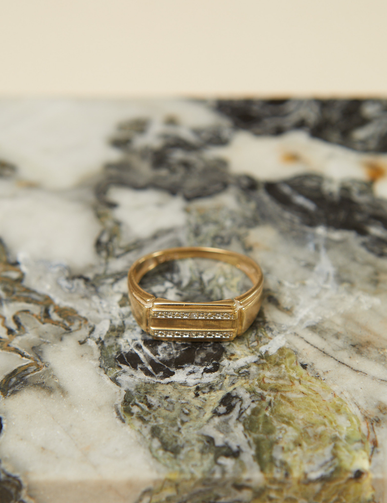 (SOLD) VINTAGE - 9ct Yellow and White Gold Men's Diamond Ring