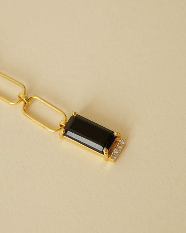 Stone: Natural black onyx gemstone and cubic zirconia.