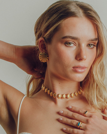 Introducing the Ibiza Earrings, a pair of summer-holidays inspired shell stud earrings in gold and water-resistant.