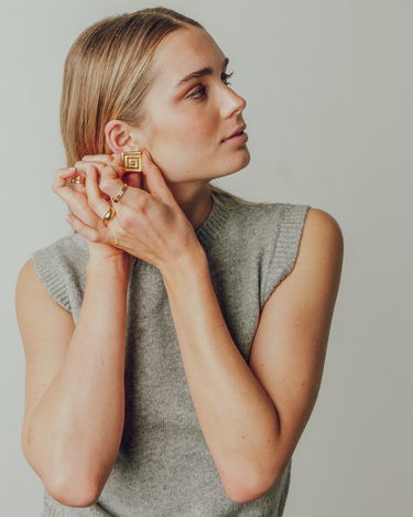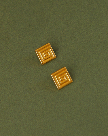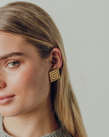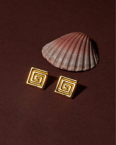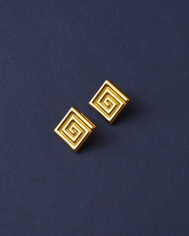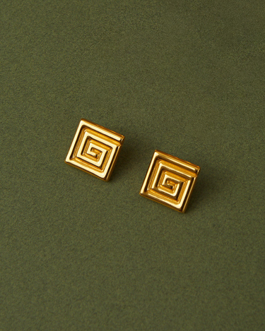 Introducing the Milan Earrings, a twist in the traditional spiral shaped earrings, with its square shaped Stud earrings in gold, part of Tide's collection.