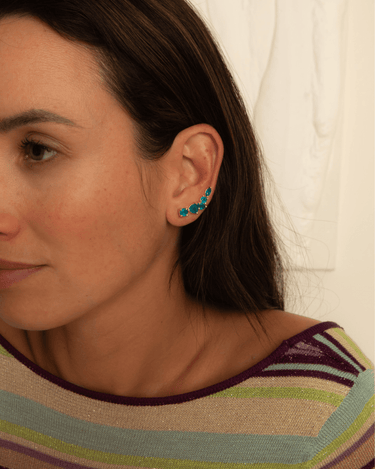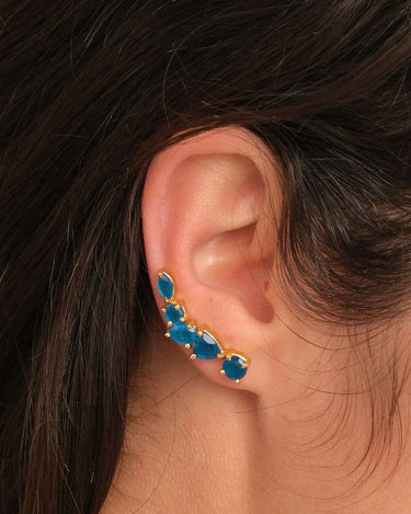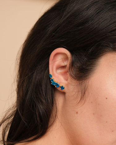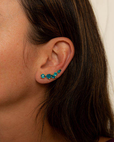 Add shimmer to any special occasion with these show-stopping ear climbers! Featuring a captivating collection of Blue Black Jade stones, reminiscent of the glistening waters around Mykonos, they'll be sure to make an unforgettable statement. Perfect for weddings and anniversaries - or a luxurious treat just because you feel like it!