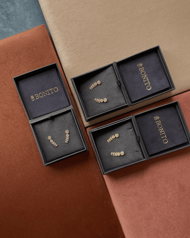To ensure your Bonito pieces stay bright and shiny for as long as possible, keep them away from water, chemicals such as perfume and chlorine, and store them in a cool dry place in an individual pour of box to avoid your jewelry tangling or scratching each other.
