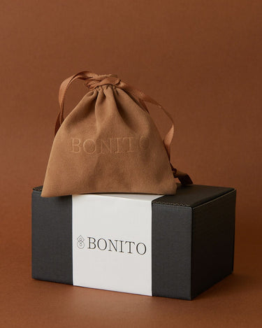 To ensure your Bonito pieces stay bright and shiny for as long as possible, keep them away from water, chemicals such as perfume and chlorine, and store them in a cool dry place in an individual pour of box to avoid your jewelry tangling or scratching each other.