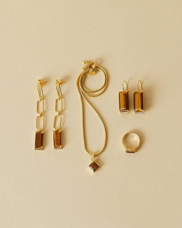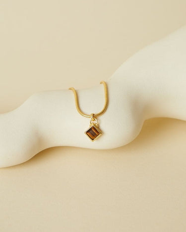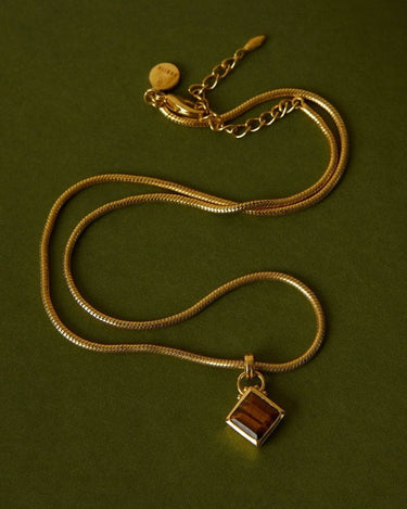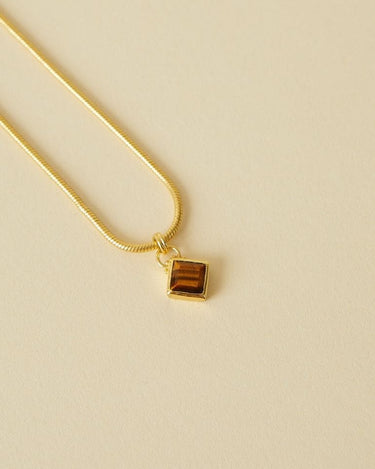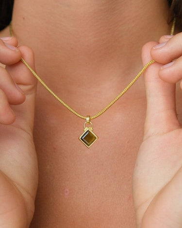 Gemstone: 1cm square pendant featuring a natural Tiger Eye gemstone